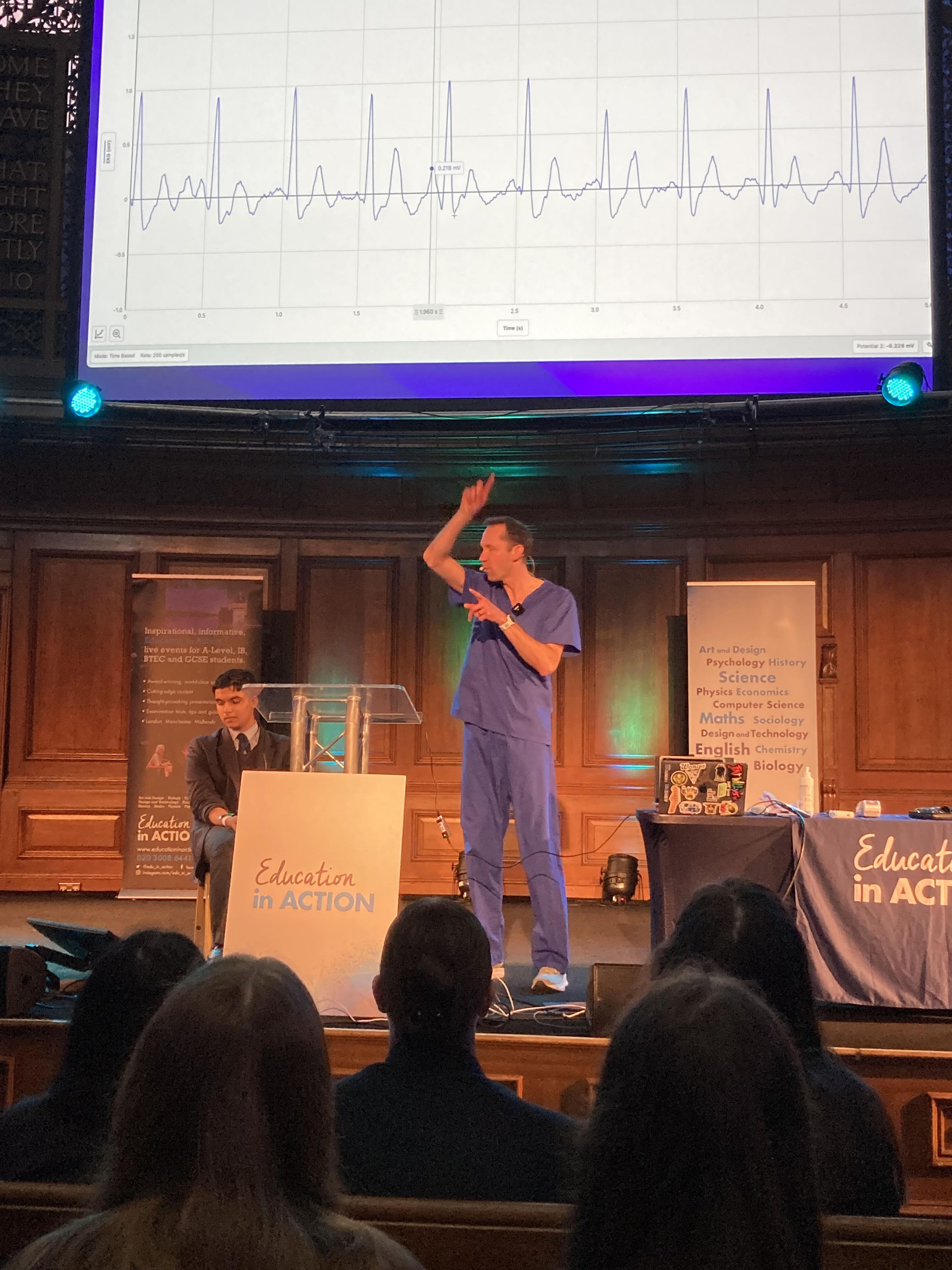 - The Human Guinea Pig with Tom Warrender—one of our students even volunteered on stage to have his ECG taken!